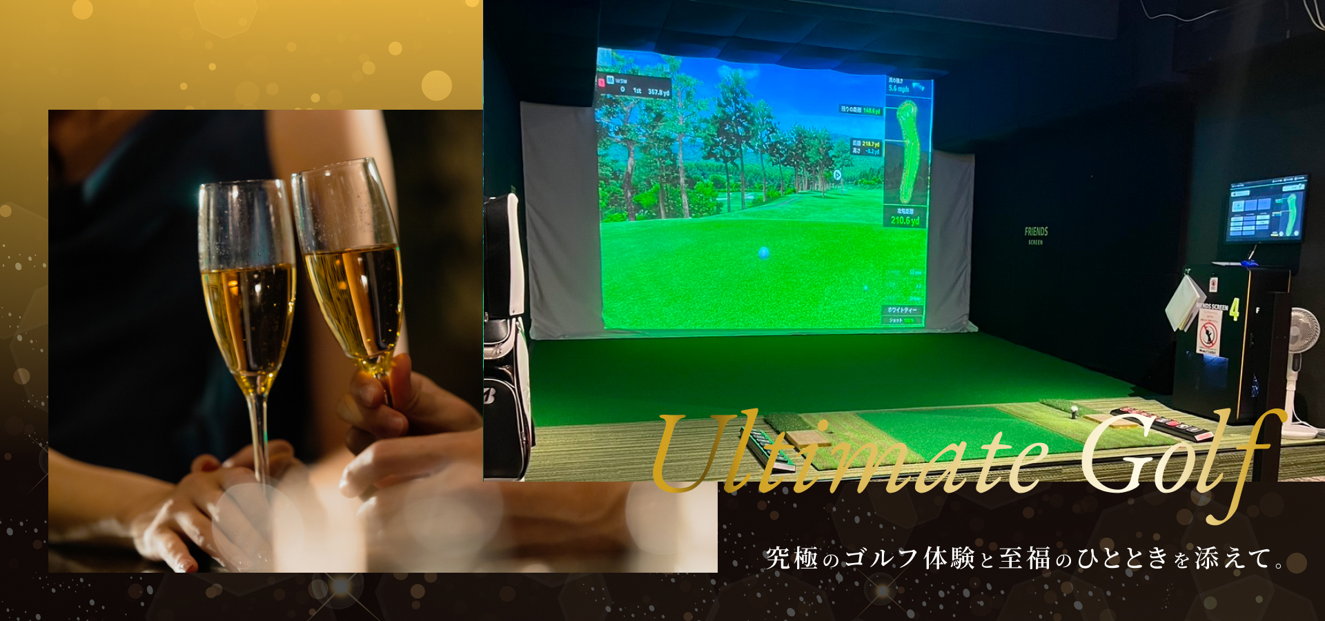 陽が落ち、街に灯がともる頃、Miracleは「究極の練習場」から「至高のラウンジ」へと姿を変えます。選び抜かれたインテリアと、心地よいライティングが演出する大人の隠れ家。スイングの余韻に浸りながらシャンパンを愉しむ、あるいは大切なパートナーとゴルフを肴に語らう。ここにあるのは、スコアアップの先にある、豊潤な人生のひとときです。